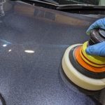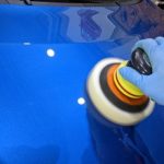 ワゴンRの磨き作業を行っております。 磨き作業は初期研磨から開始しました。 毛先8ミリのポリッシングウールバフ…