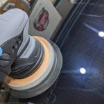 プリウスαの仕上げ磨きです。 軽くミストで塗装面を湿らせてからバファ処理を行います。 コンパウンドは使用しませ…