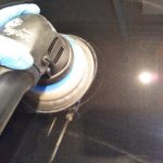 V40の仕上げ磨きです。コンパウンドレスの「空当て」を行っています。 下地処理が完了した塗装肌で…