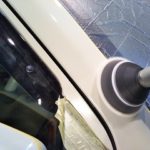 ekワゴンの磨き作業です。 チョーキングが発生した塗装肌をガッツリ磨いてリフレッシュさせております。 初期研磨…