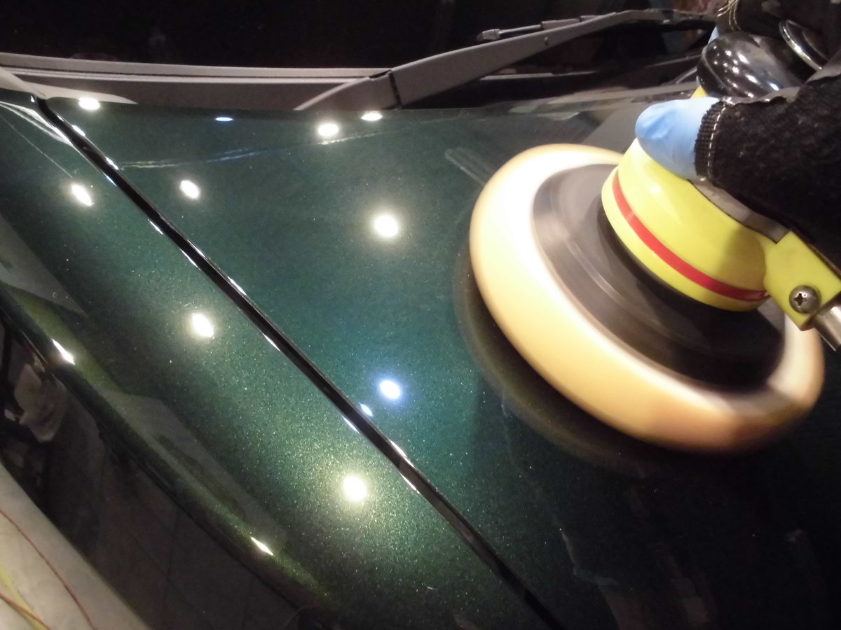 今回も、バファ処理ではボディ全体に点在する「バフ目」の除去から始めました。