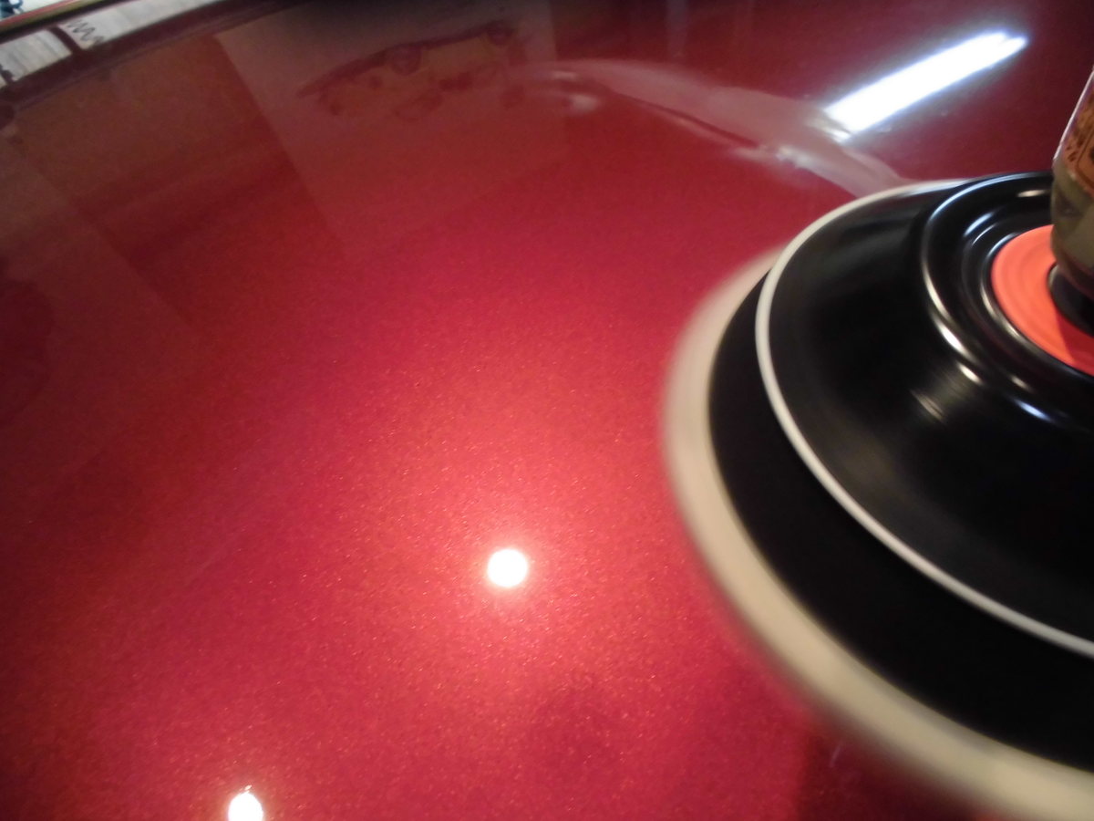 経年の紫外線による塗膜の硬化が感じられました。「硬化」といっても硬質な塗装とは違い、弾性が失っていくネガティブな現象ですので、進行する(何年~)につれて超微細な(目に見えない)クラッキング→クリヤー層の褪色へと進んでしまいます。